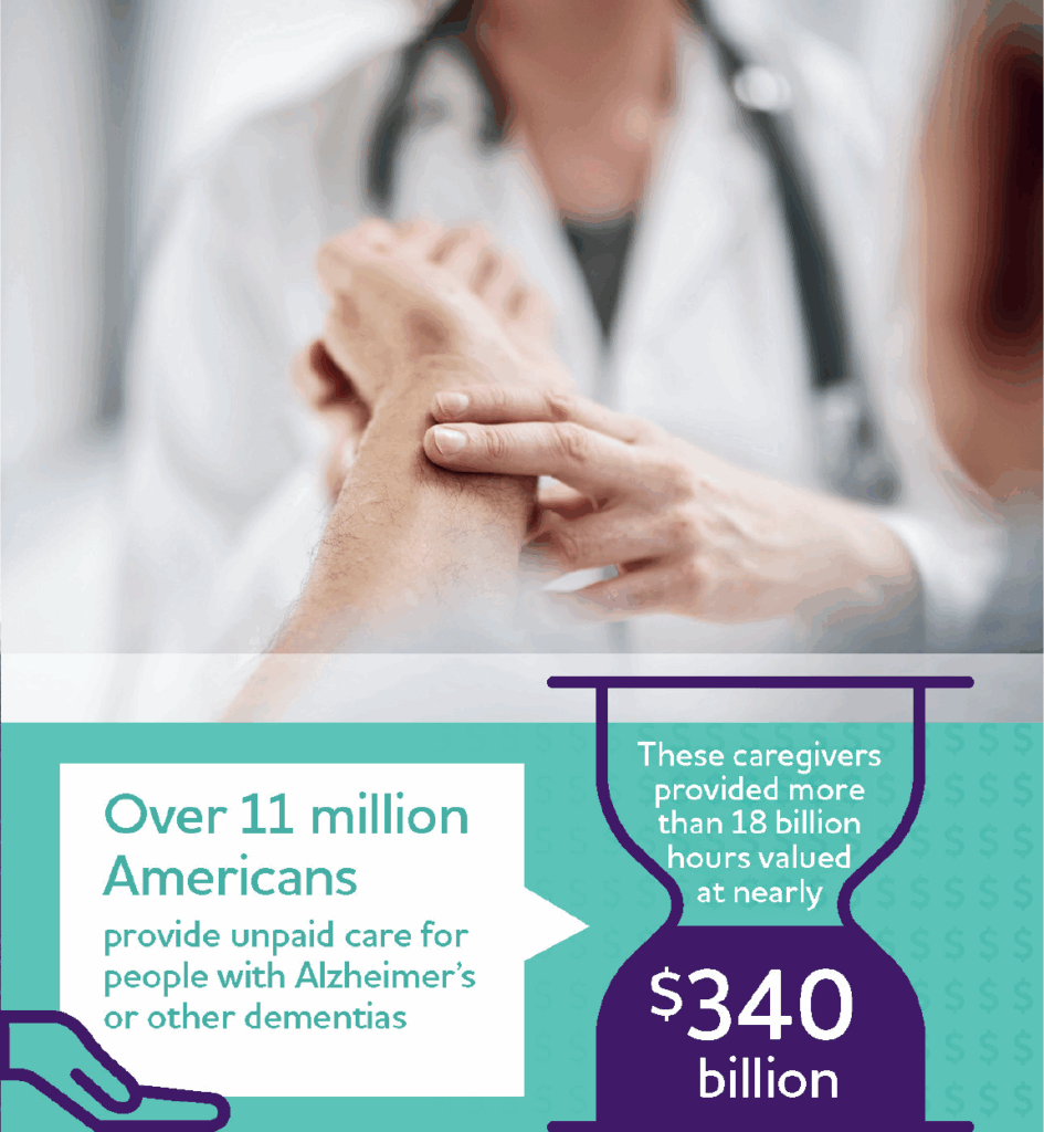 On top of that number, more than 178,000 caregivers dedicate 309 million hours of unpaid care to their loved ones, family members and friends. We all know someone affected by Alzheimer’s or other form of dementia – whether someone suffering from the disease or someone caring for a loved one with it. Only together can we find the cure.