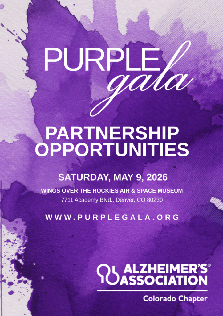 Corporate Sponsorship Partners are essential in supporting those living with Alzheimer’s disease and their caregivers. Start today as a Purple Gala Sponsor Partner with the Alzheimer’s Association of Colorado. Your investment as a sponsor will raise vital funds and elevate awareness to underwrite the Alzheimer’s Association’s support, education, advocacy and research efforts.